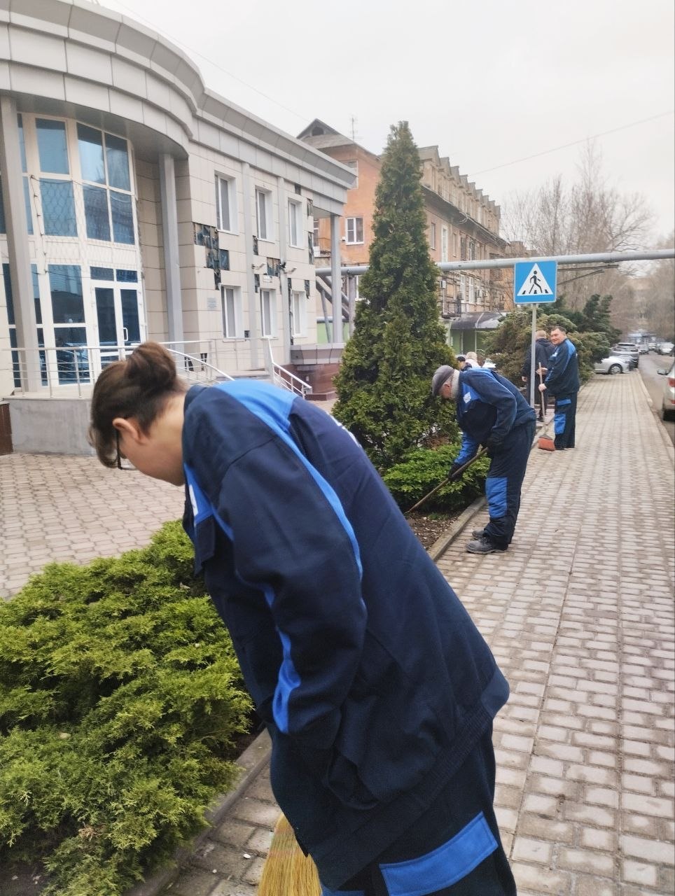 Сотрудники навели порядок на прилегающих территориях: убрали прошлогоднюю листву, привели в порядок газоны и подмели дорожки.