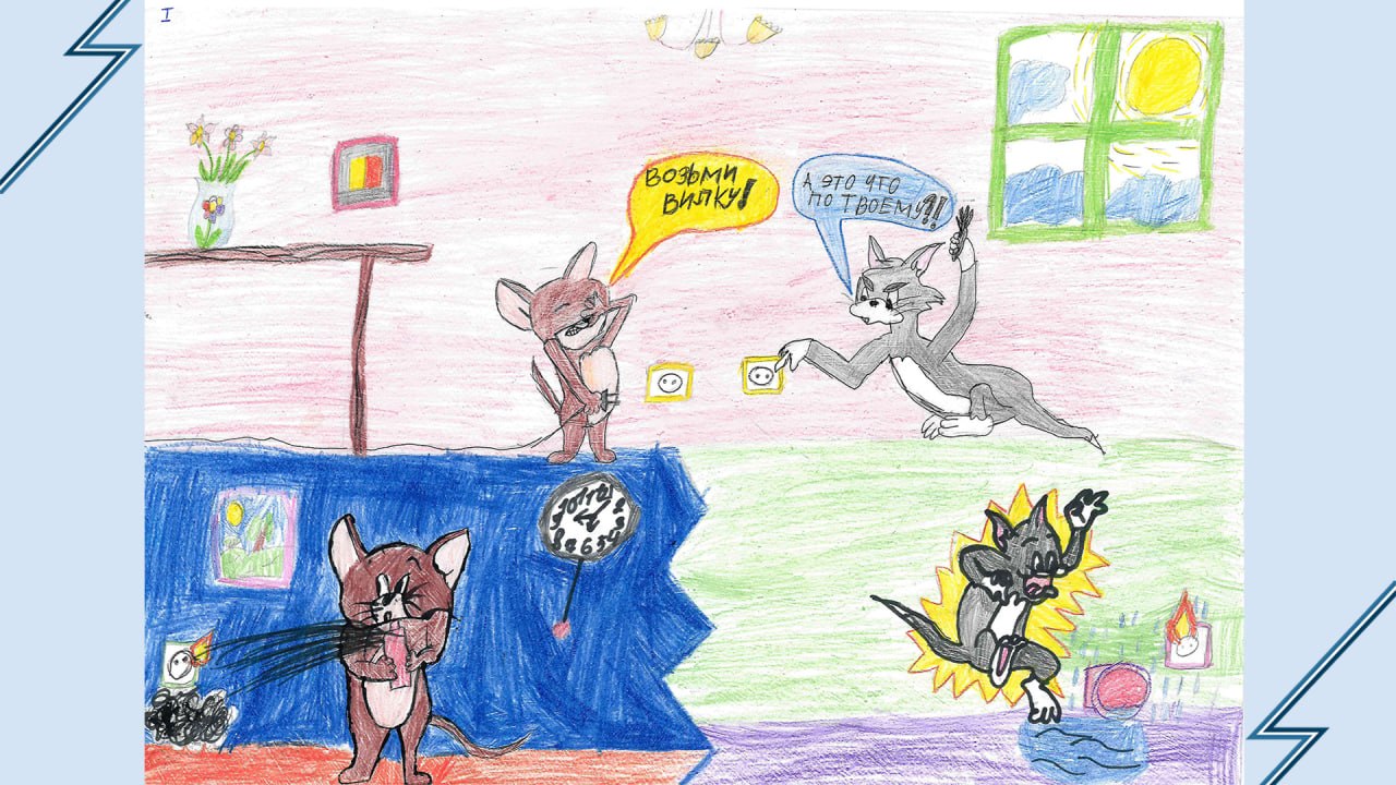 I место – Алиса Рябцева, рисунок «Том, учи правила электробезопасности!!!» (исполнительный аппарат АО «Юго-Западная ЭСК»).