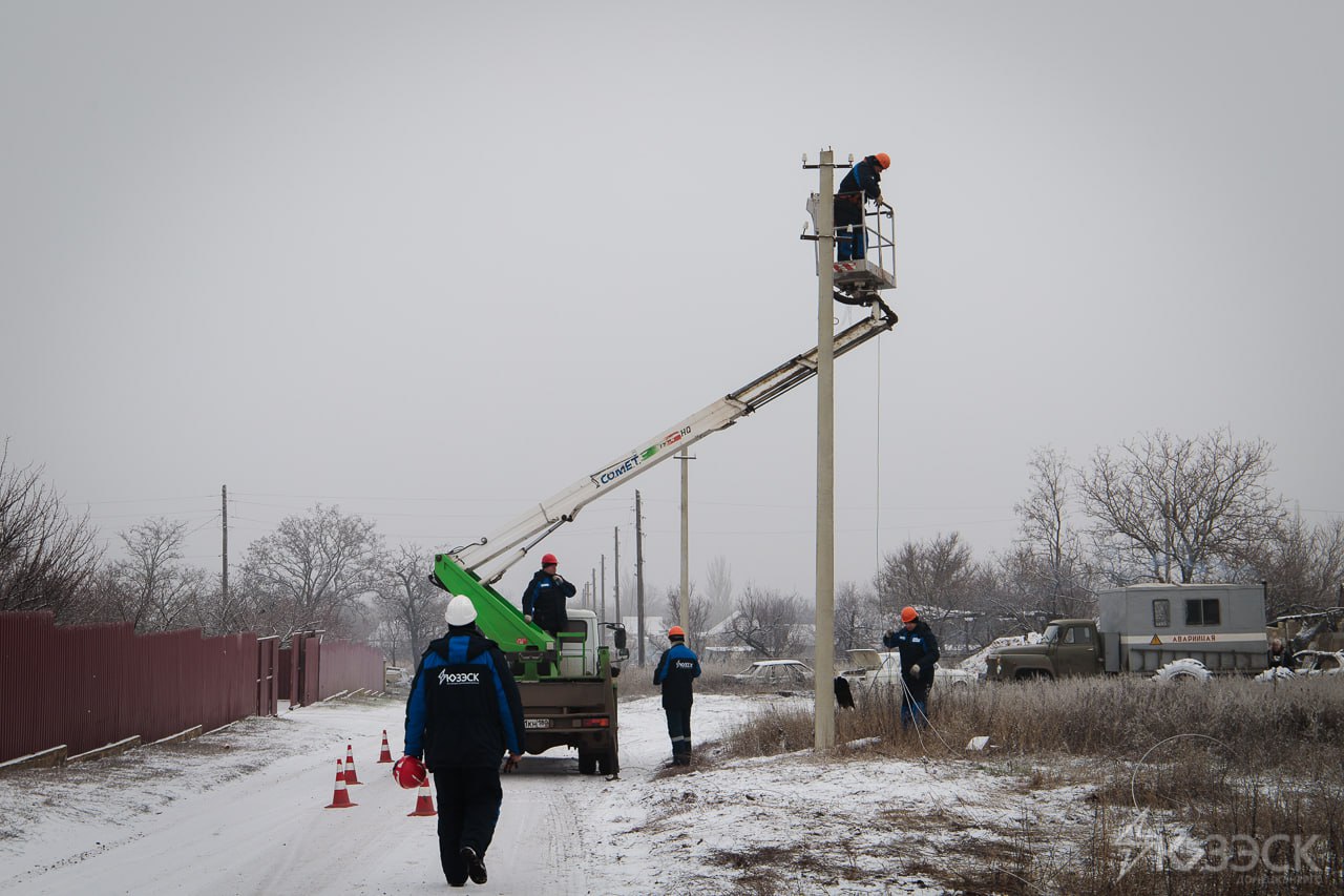 Восстановление освобожденных территорий не останавливается ни на день. Трудности подстерегают бригаду на каждом шагу, в целости подъехать к месту выполнения работ целиком зависит от опыта и мужества водителя. Бездорожье, местами гигантские канавы заполненные водой, которые объехать можно только по густым зарослям обочин. По дороге можно наткнуться на части разбитой техники. Пресс-служба, когда выезжала на съемку бригады Волновахского РЭС, оставила машину на полпути на нашем Daewoo Lanos доехать к бригаде шансов не было. А еще мы пробили колесо и благодаря собранности нашего водителя Виталика, его выносливости и морозостойкости мы поменяли колесо в поле на семи ветрах.