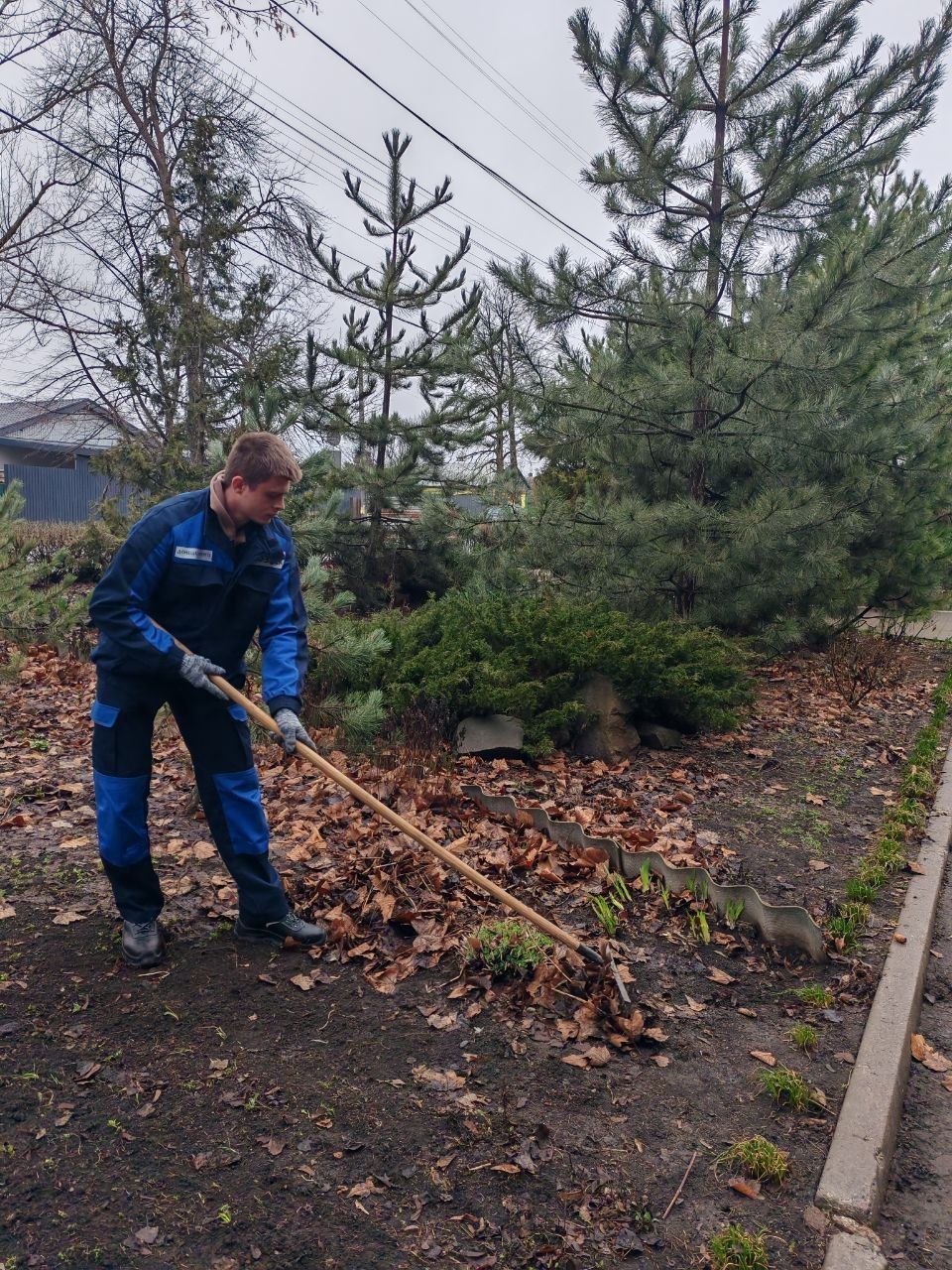 Сотрудники навели порядок на прилегающих территориях: убрали прошлогоднюю листву, привели в порядок газоны и подмели дорожки.