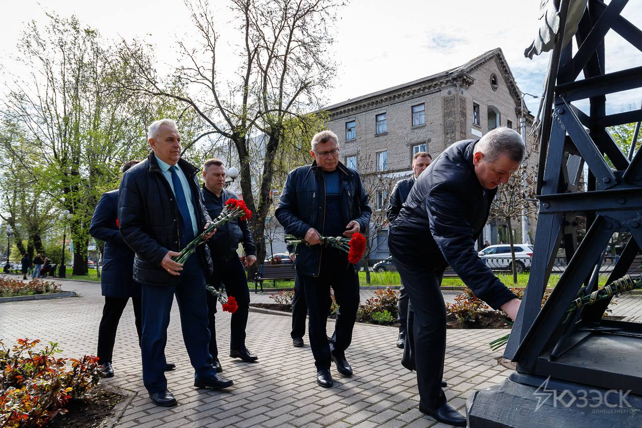 Руководители «Донецкэнерго» филиала АО «Юго-Западная ЭСК» с глубоким уважением и скорбью почтили память погибших работников, возложив цветы к Мемориалу.